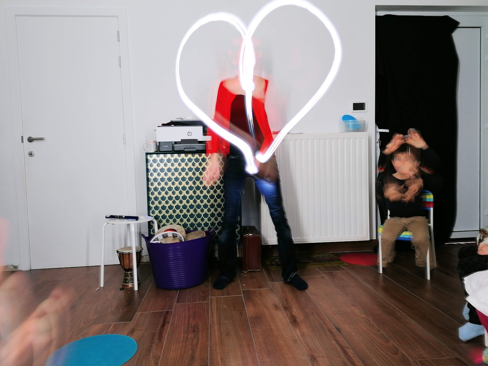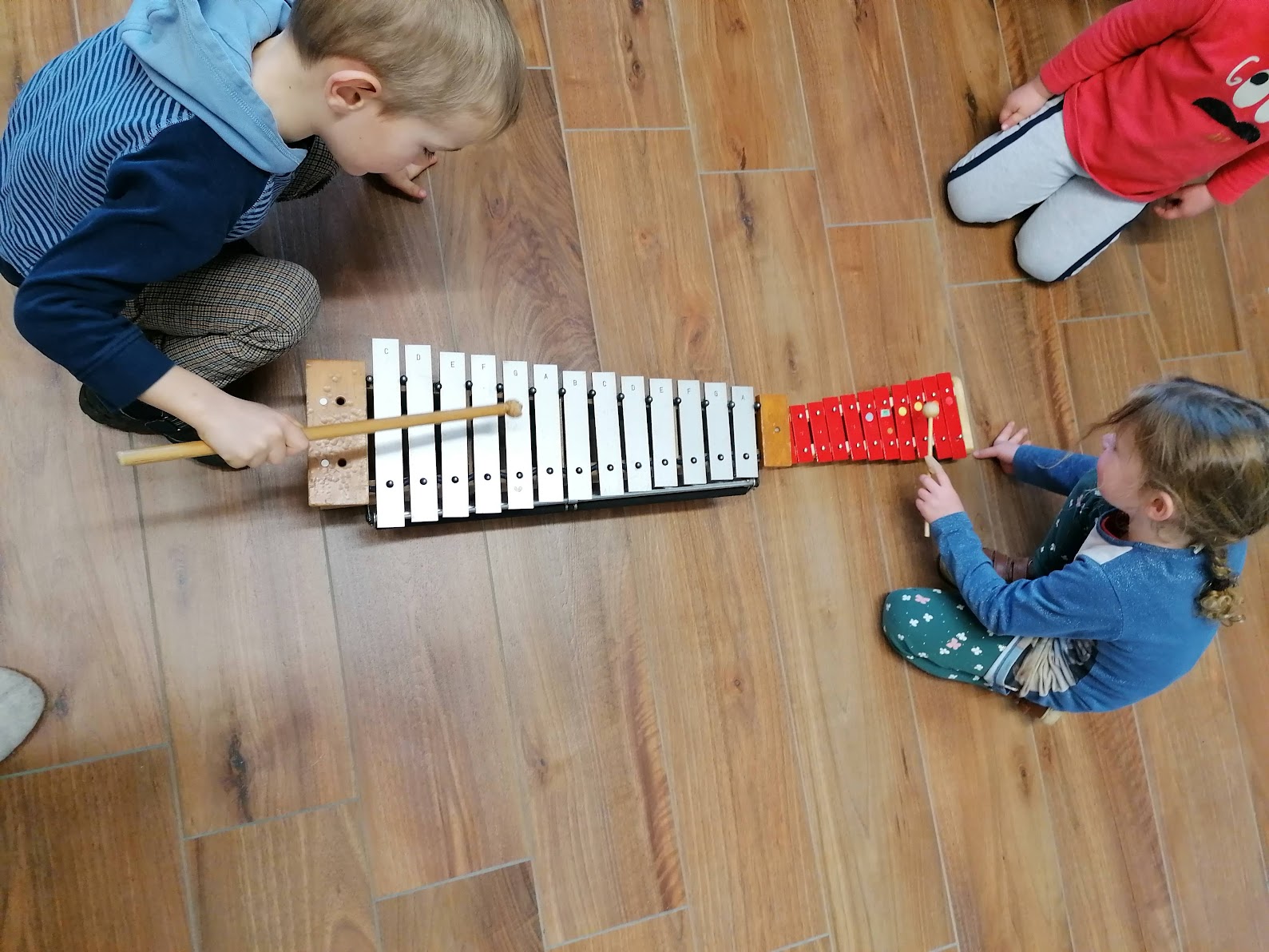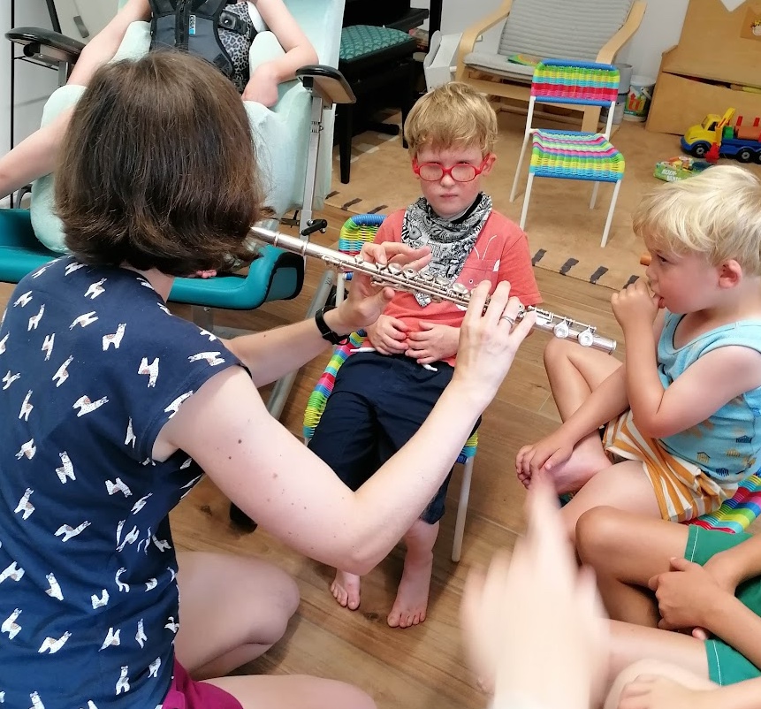 In de 1ste groep van de jongste kleuters (peuter en 1ste kl) ligt de focus op ontdekken, luisteren, maat en ritme voelen met bewegingen en ook eenvoudige liedjes leren.