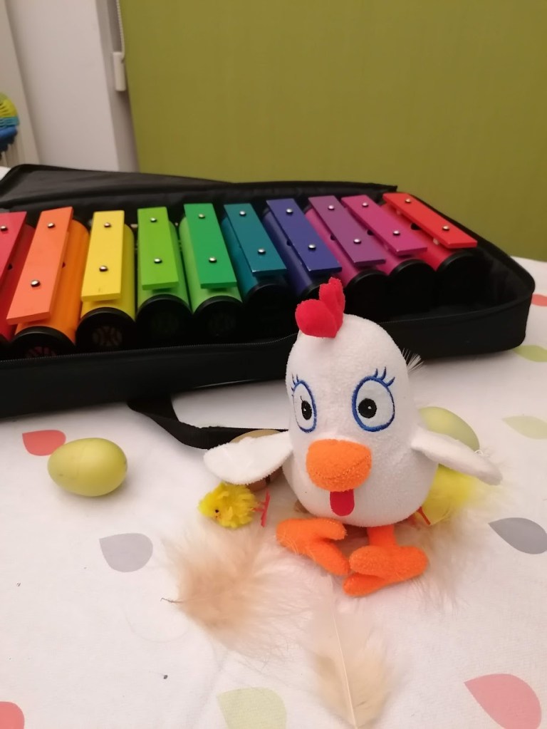 Bij de 2de groep van de oudste kleuters (2de & 3de kl) gaan we wat verder met het variëren van klankkleuren, tempi en volume en zijn de ritmes en liedjes al wat langer.