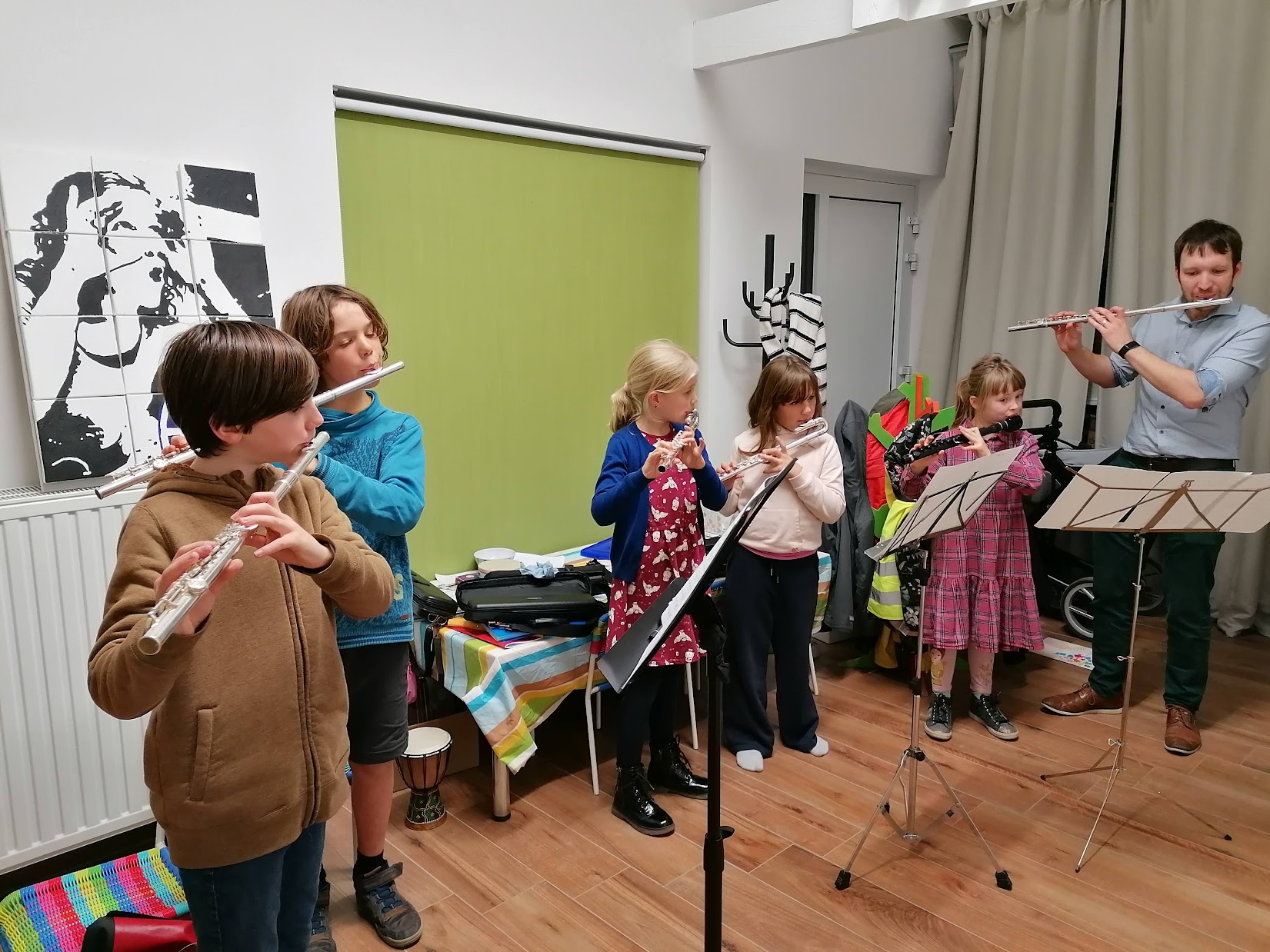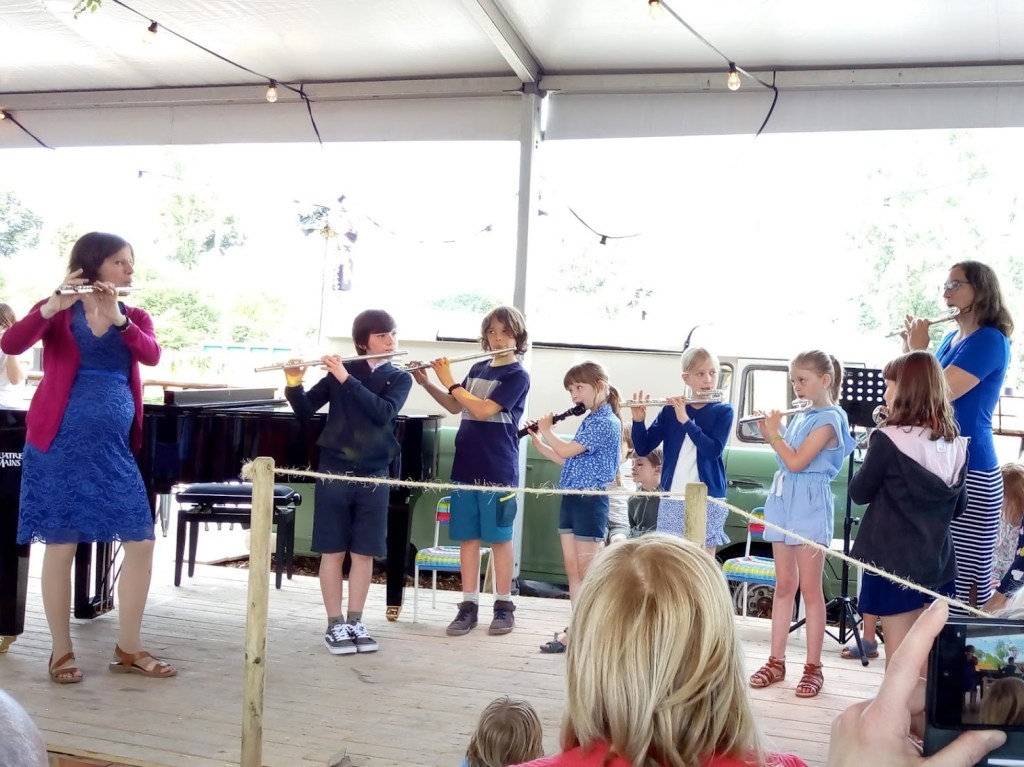 Op woensdagnamiddag 8 januari trokken de leerlingen dwarsfluit en enkele pianoleerlingen naar het WZC Het Berkenhof in Merelbeke. Een straat verder dan het Muzkido-atelier 🙂