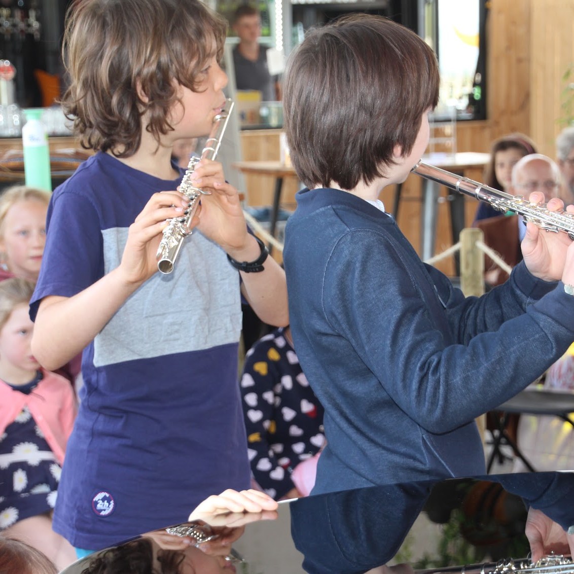 Het repertoire van de jonge pianisten was gevarieerd en werd met veel concentratie en muzikaliteit gebracht. De dwarsfluiten speelden samen ‘Nu zijt Wellekome’ en ‘De Herdertjes lagen bij Nachte’. Verschillende bewoners kenden deze kerstliederen uit de oude doos en zongen ook mee!